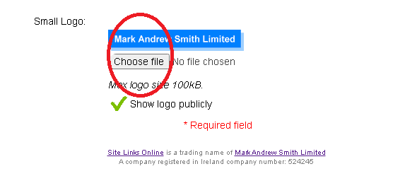 Note: If you want to upload your company logo, it is highly recommended to save your data first. Click “Choose file” to upload your file, then click “Save” again.