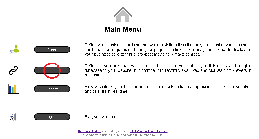 In order to create a link from us to each of your webpages, from the Main Menu, click “Links”…